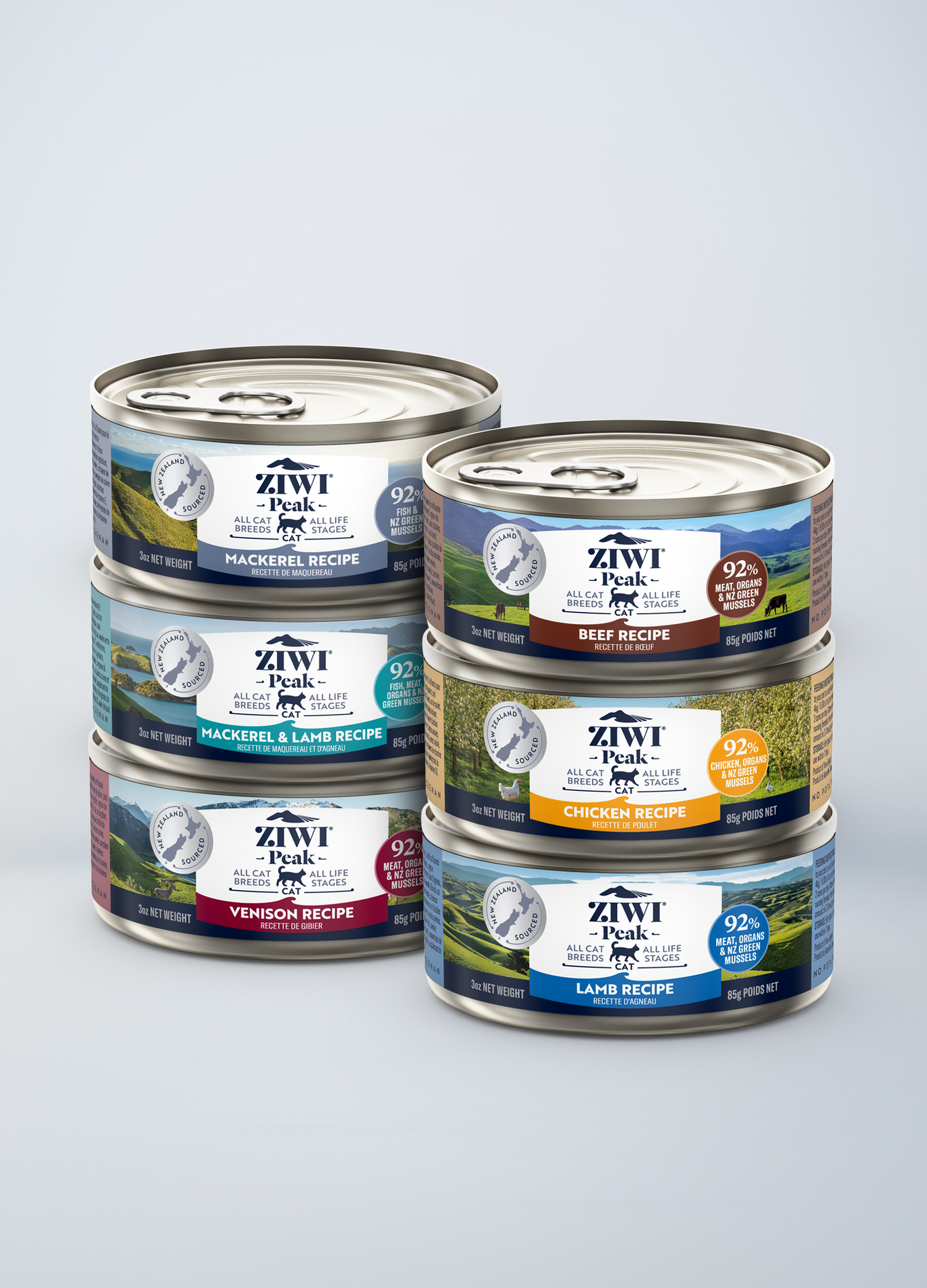 Every ZIWI Peak canned wet food recipes feature 91-97% meat, organs, seafood...